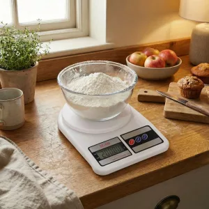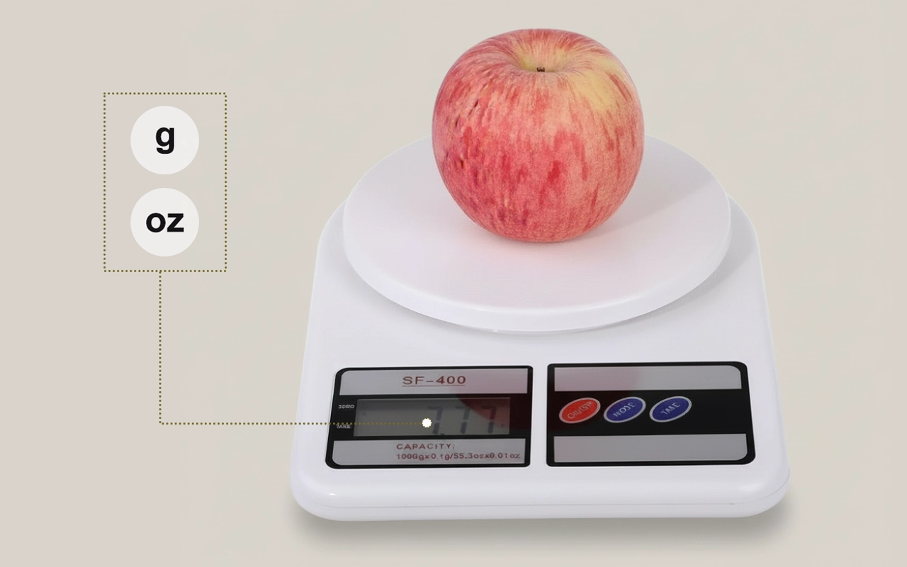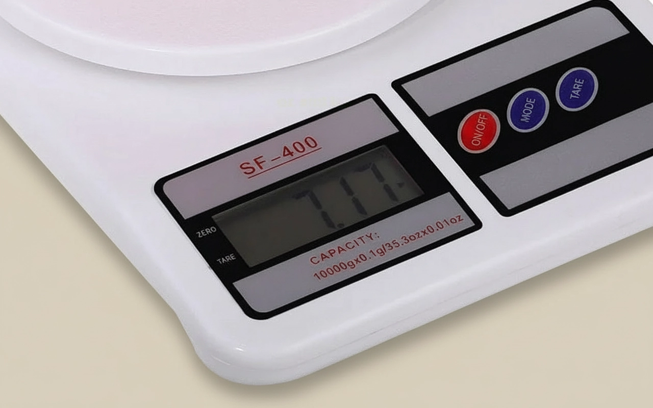 Keittiövaakamme avulla voit valita oz:n ja kg:n välillä.