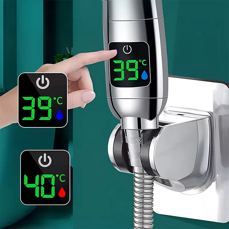 Ortorex-suihkupää näyttää veden lämpötilan reaaliajassa.