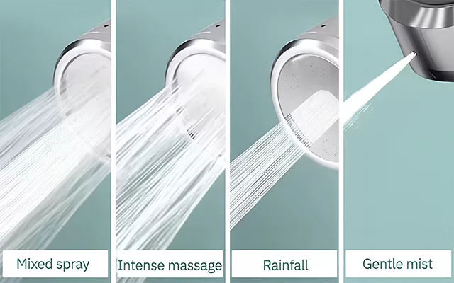Voit valita lempeän sumun, voimakkaan hieronnan, sadevesisuihkun ja yhdistetyn suihkun välillä. Jokainen asetus tarjoaa ainutlaatuisen tunteen, joka takaa rentoutumisen ja mukavuuden.