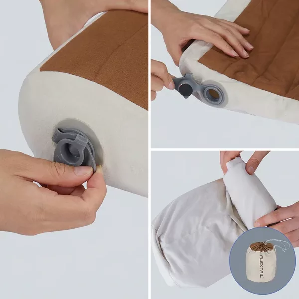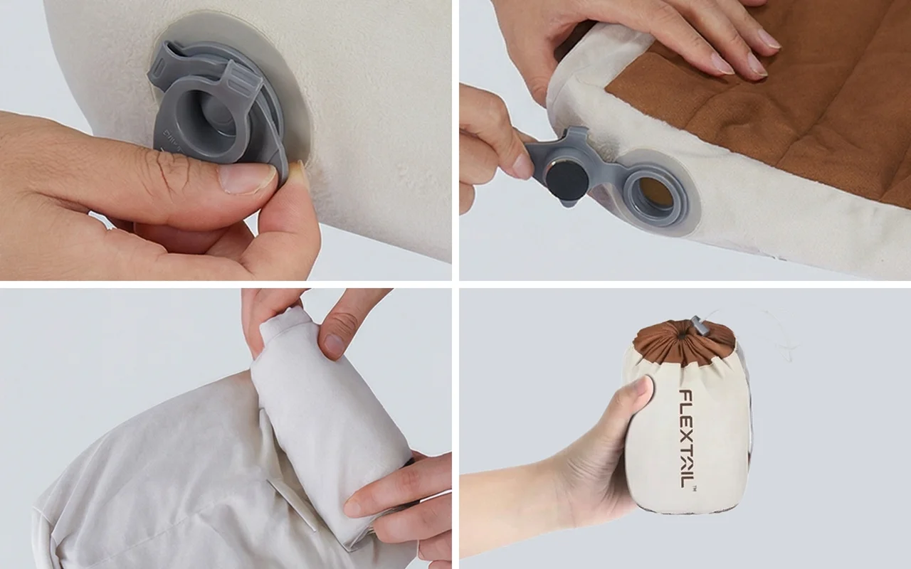 Rakastan kuinka pieniä tämä tyyny on pakattuna retkeilyä varten. Todella helppo täyttää ja tuki niskalleni teki ulkona nukkumisesta paljon mukavampaa.