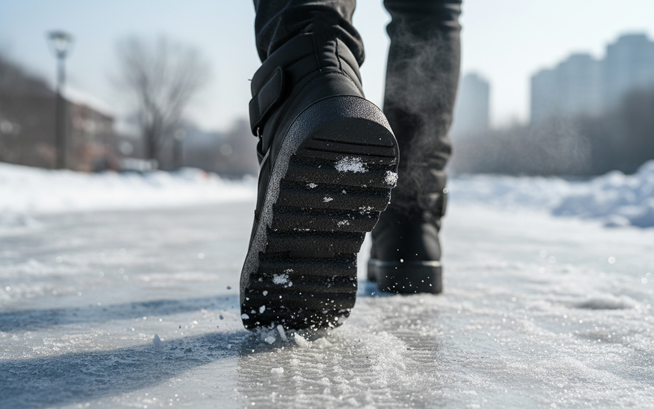Kuvioitu pohja takaa paremman pidon liukkailla teillä. Liiku turvallisesti ulkona talvikeleillä.