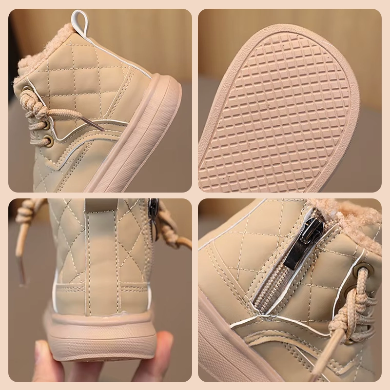 Ei enää märkiä sukkia lapsillani tänä talvena! Vuori on pehmeä ja pitää jalat lämpiminä ulkona leikkiessä.