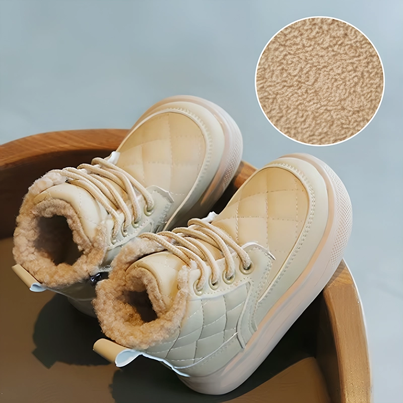 Jalat pysyvät lämpiminä, vaikka lunta sataisi ja tuuli puhalsi kovaa. Pehmeä sisävuori tukee lämpöä ja mukavuutta pitkään ulkoleikkiin.