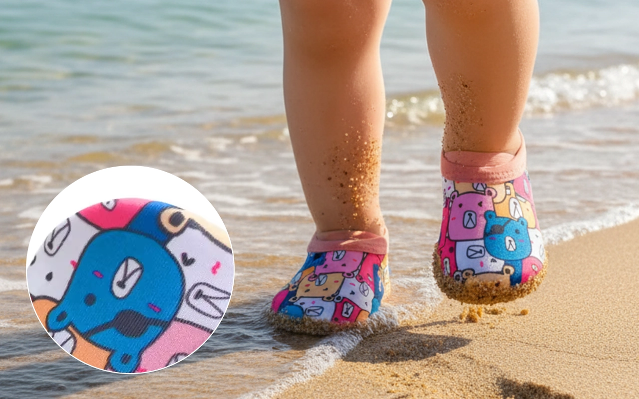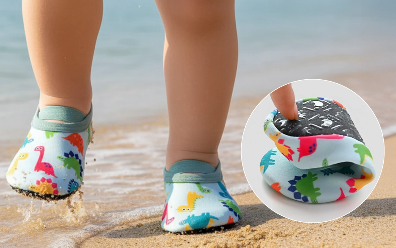 Kosteus poistuu nopeasti, pitäen pienet jalat mukavana jokaisen loiskutuksen jälkeen.