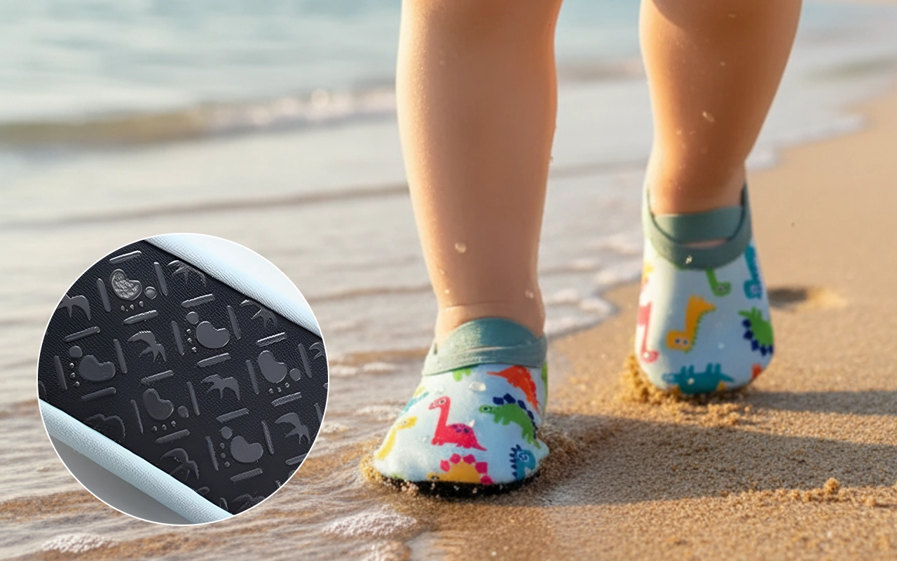 Kenkämme tarttuvat tiukasti märkiin pintoihin, auttaen lapsia pysymään vakaasti jaloillaan.