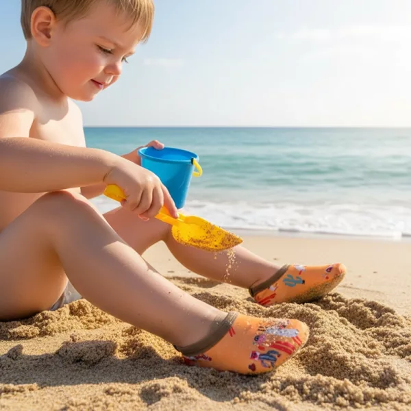 Ortorex-lasten rantakengät mukautuvat joka askeleeseen puristamatta tai hiertämättä. Lapset voivat liikkua vapaasti vesileikin aikana.