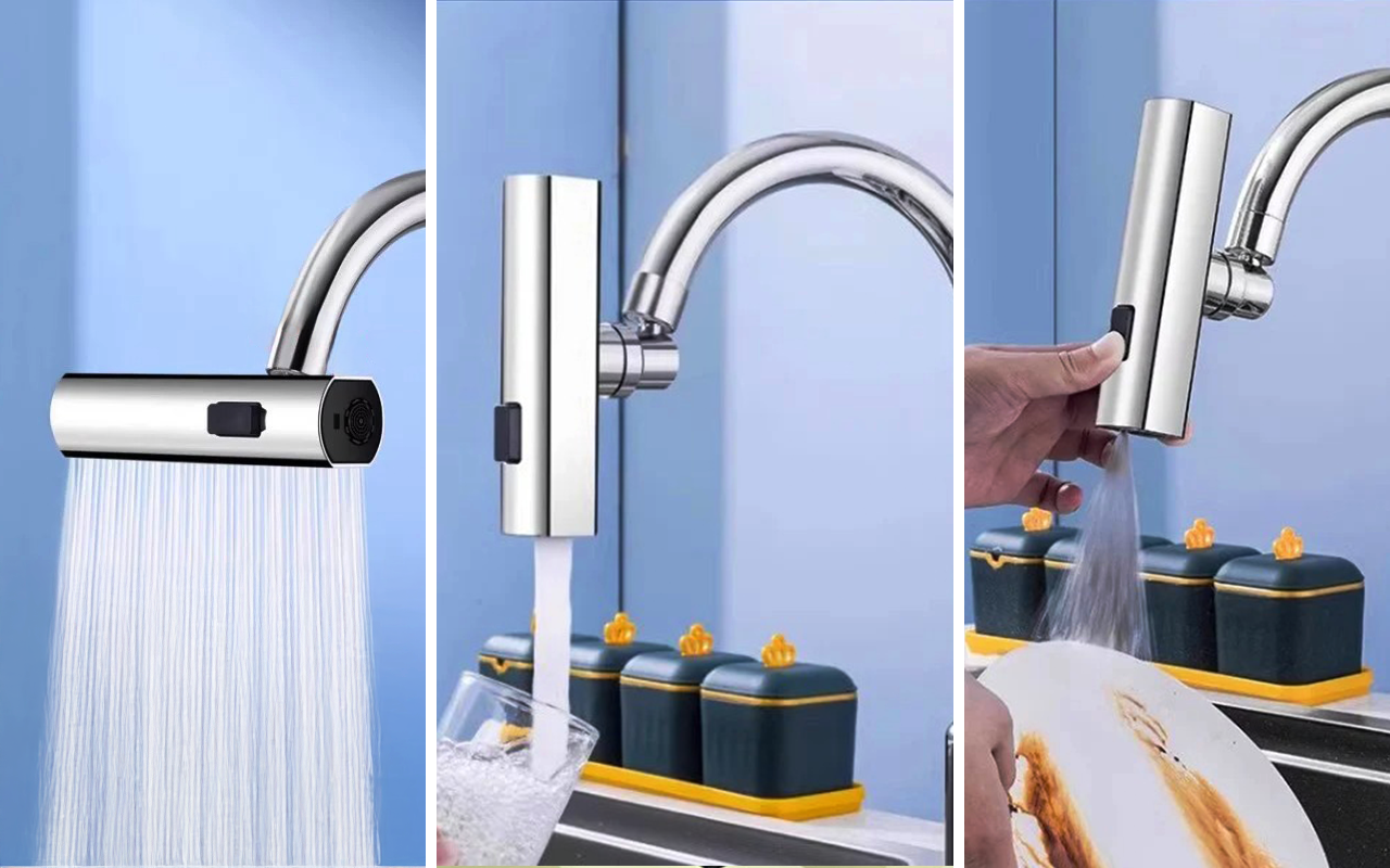 Hanasuutin teki kattiloiden puhdistamisesta paljon helpompaa. Pyörivä pää ulottuu joka kulmaan, ja suihkun vaihtaminen auttaa vihannesten huuhtelussa todella hyvin. Oli todella helppo asentaa!