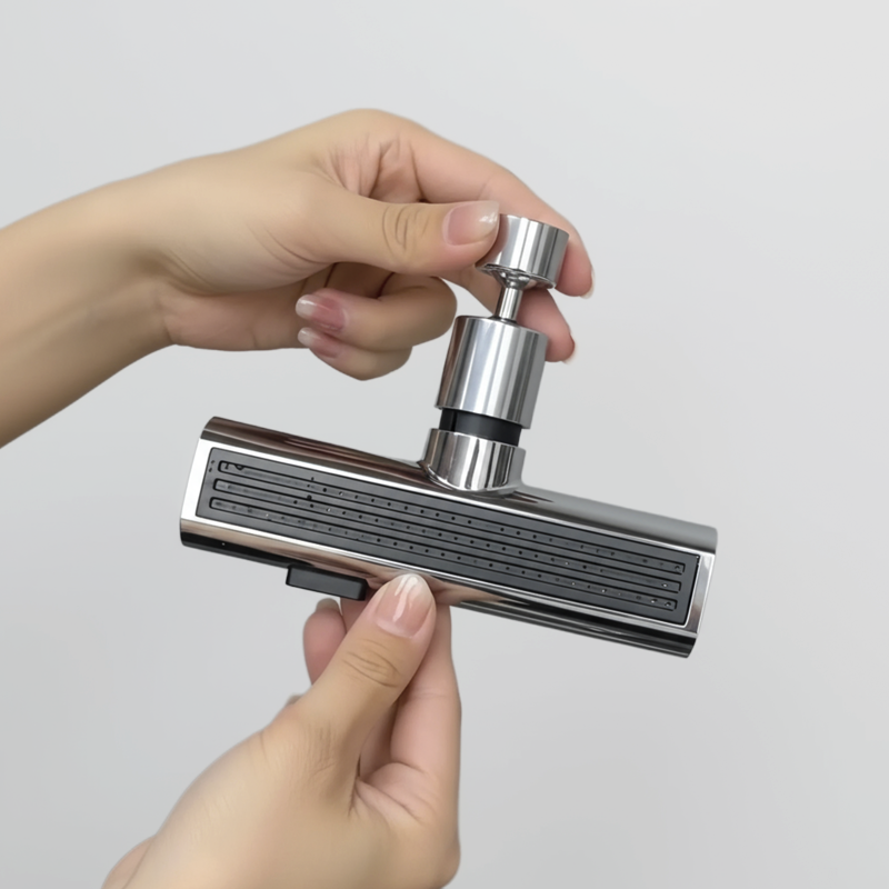 Tämä suutin auttaa säästämään vettä ja laskee vesilaskua, mutta puhdistaa silti hyvin. Asennus vei kaksi sekuntia. Tuntuu tukevalta.