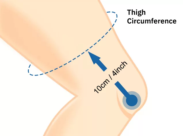- 1. Taivuta jalkaa 30° kulmaan ja mittaa reiden ympärys 10 cm (4'') polvilumpion yläpuolelta.