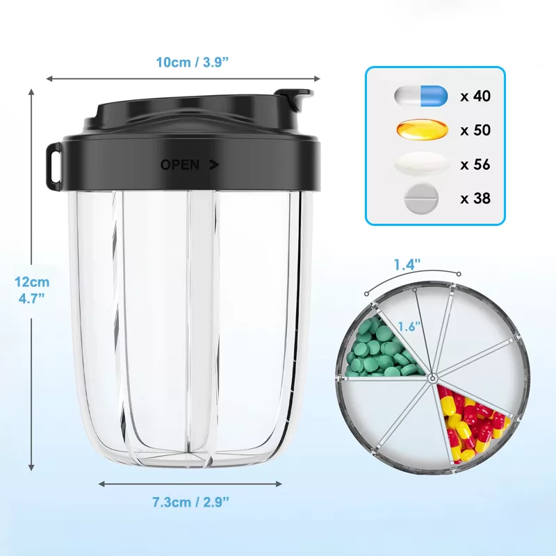Lokerot on valmistettu BPA-vapaasta materiaalista turvallista käyttöä varten. Elintarvikekelpoinen muovi pitää tablettisi suojassa ja puhtaina.