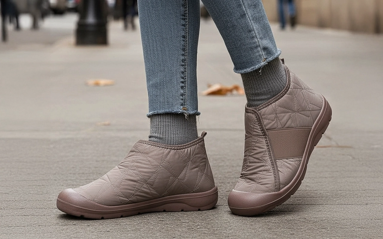 Sisävuori tuntuu niin kotoisalta, kuin lempeä halaus jaloille. Jalat pysyivät kuivina lumisilla jalkakäytävillä.