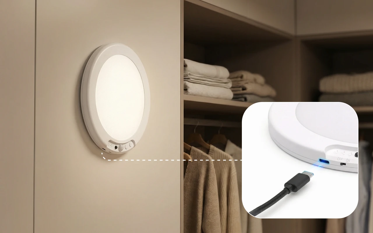 Lataa Ortorex-kattovalaisin nopeasti USB Type-C -kaapelilla. Yksi täysi lataus takaa viikkojen luotettavan valaistuksen.
