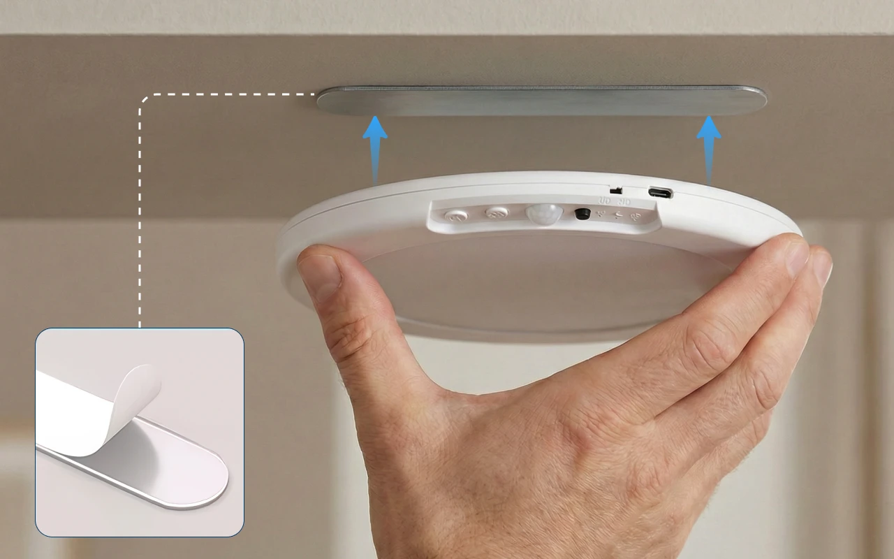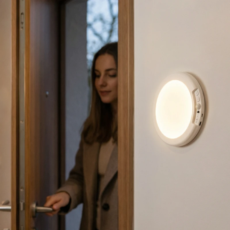 Ei enää kytkimen hapuilua! Tunnistaa kun astun huoneeseen ja syttyy heti. USB-lataus oli myös todella nopea.