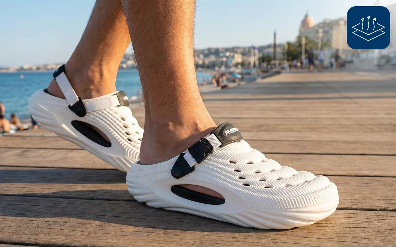 Aloita jokainen aamu tyylillä ja nauti kevyestä tuesta missä tahansa. Hengittävä EVA pitää jalat viileinä aurinkoisilla kävelyillä tai kiireisinä iltapäivinä. Kävele itsevarmasti minne ikinä menetkin – äläkä koskaan murehdi väsymyksestä. Ortorex-tossut tarjoavat yksinkertaista mukavuutta kaikkiin kesän seikkailuihin.
