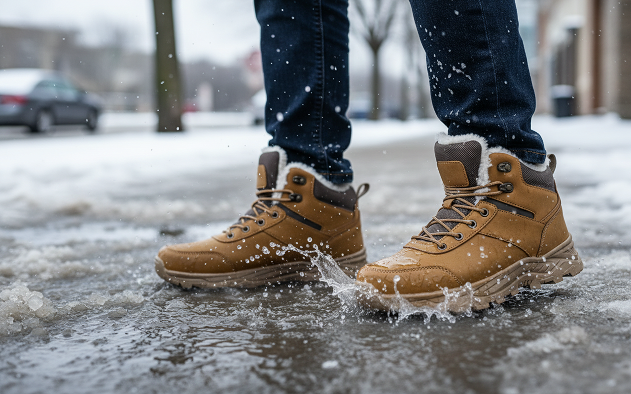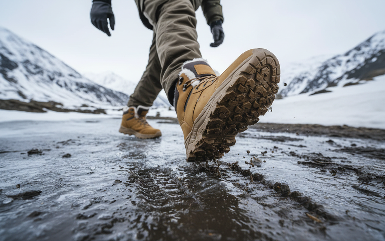 Erityinen suoja estää veden, lumen ja roiskeiden pääsyn kenkiin täydellisesti. Enää ei tarvitse kärsiä märistä sukista tai kylmästä vedestä.