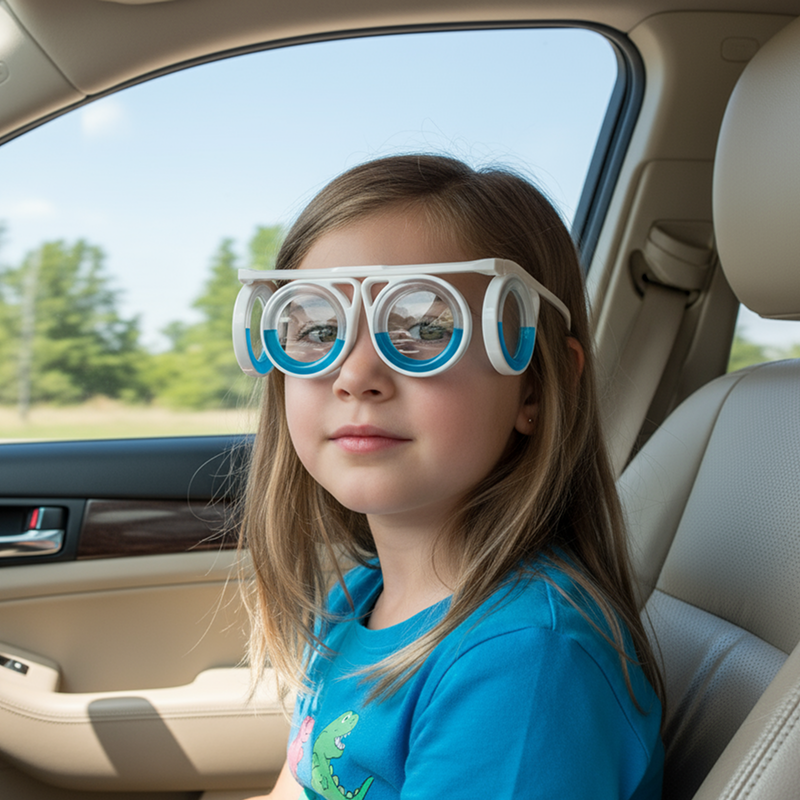Nämä lasit pelastivat tieni matkan. Hetken kuluttua en enää tuntenut pahoinvointia takapenkillä ja pystyin jopa lukemaan sarjakuvaa ilman ongelmia.