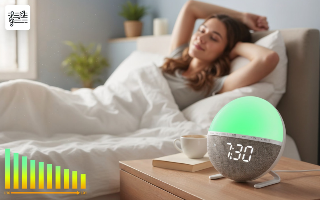 Tunnelmavalot ovat mahtavia, kun luen ennen nukkumaanmenoa. Herääminen on nyt pehmeämpää, kun lempeät äänet yhdistyvät auringonnousuun.