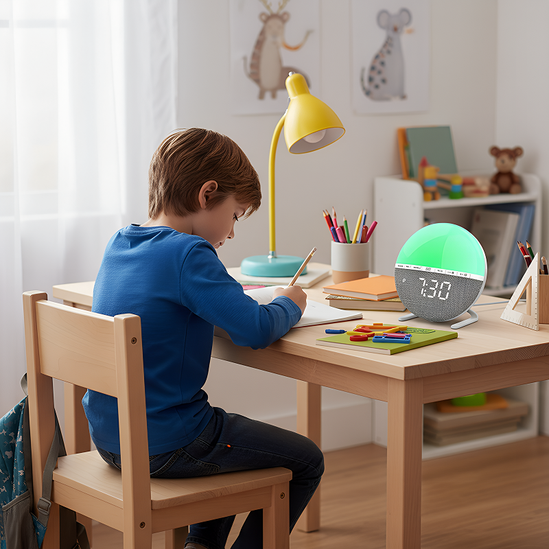 Molemmat lapseni nauttivat lempeästä heräämisestä valoilla. Ei enää kiireisiä, stressaavia aamuja ennen koulua – todellinen muutos meille!