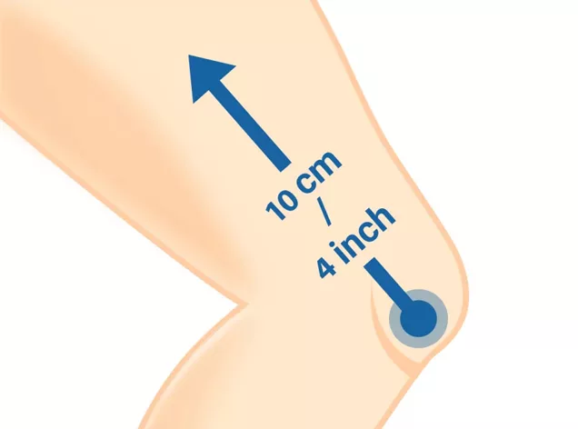 - 2. Kiedo mittanauha reiden leveimmän kohdan ympäri noin 10cm/4" polvilumpion keskikohdan yläpuolelta.
