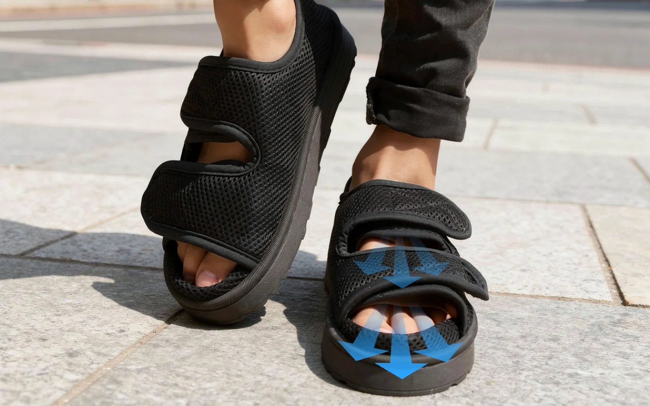 Nämä diabetestossut ovat auttaneet turvonneita varpaitani todella paljon. Avoin etuosa estää hiertämistä, ja tarranauha tekee säätämisestä helppoa päivän mittaan.