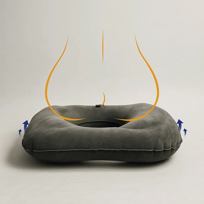 Leikkauksen jälkeen tarvitsin jotakin helpottamaan istumista, ja tämä tyyny teki tempun. Muoto tukee häntäluuta, eikä käytössä tule hikinen olo.