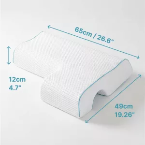 Tämä tyyny, jossa on pieni tila käsivarrelle, on meille todellinen pelastus. Kumppanini ja minä heräämme vihdoin mukavasti, eikä hartiat enää tunnu jäykiltä tai kädet tunnottomilta.