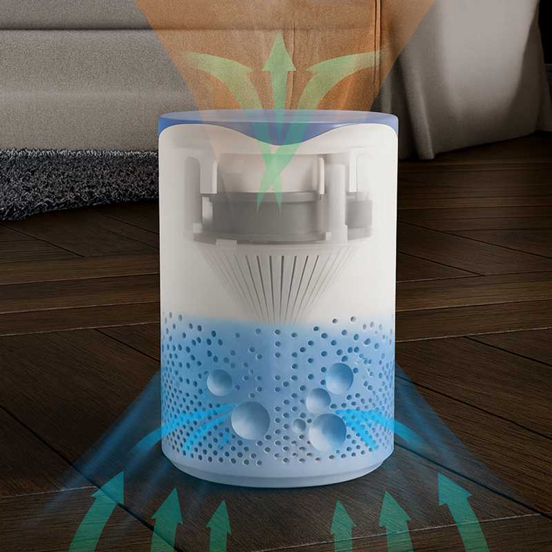 Pölyn ja siitepölyn hiukkaset katoavat nopeasti ilmasta. Hengittäminen helpottuu, mikä tukee levollisia öitä ja terveellisiä päiviä.