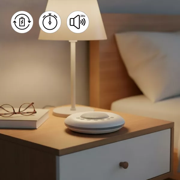 Mieheni kuorsaa ja olen herkkäuninen. Tämä laite peittää äänet, ja heräämme molemmat vähemmän äreinä. Lukuisat äänivaihtoehdot auttavat paljon.