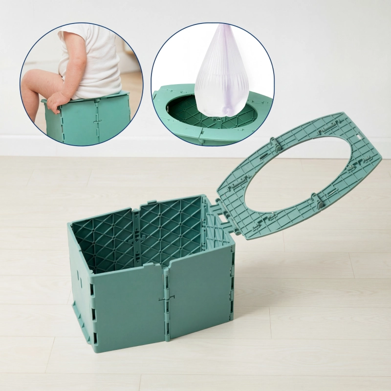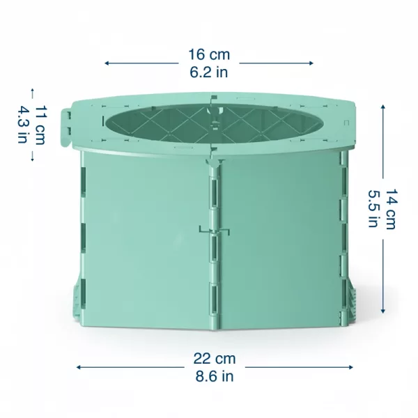 Ei enää julkisten vessojen stressiä! Tämä pieni potta taittuu pieneen tilaan ja auttaa meitä aina nopeasti. Suojat ovat loistavat.