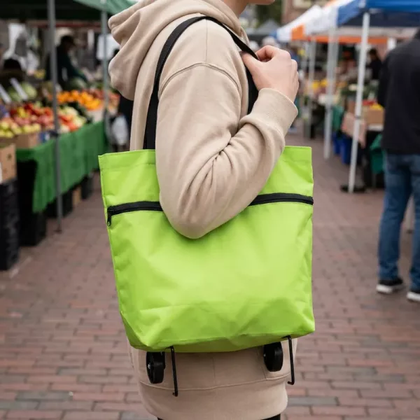 Käytän kärryä torilta ostamiseen. Vahva runko ja kestävä kangas pitävät purkit ja hedelmät turvassa, ja hiljaiset pyörät eivät häiritse naapureita aikaisin aamulla.