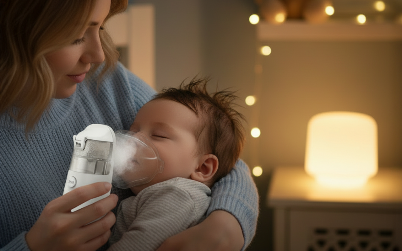 Yöllinen hengitysapuväline auttaa lepäämään syvästi. Vauvat ja aikuiset nukkuvat rauhallisesti, kun sumu rauhoittaa hengitysteitä hellästi.
