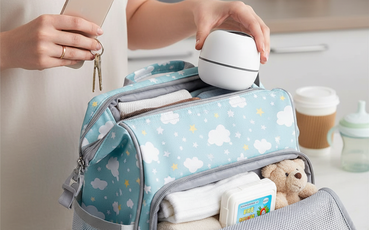 Kuljetan tätä sterilointilaitetta joka paikkaan. Se on pieni, lähes painoton ja täydellinen vanhemmille, jotka haluavat nopean ja vaivattoman puhdistuksen.