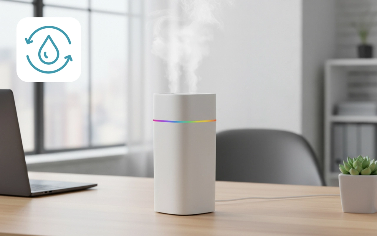Toimistoni tuntuu paljon paremmalta tämän avulla. Viileä sumu pitää ilman miellyttävänä ja sitä on todella helppo kantaa kodin ja työpaikan välillä.