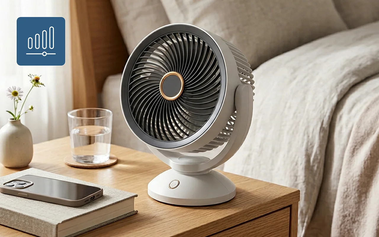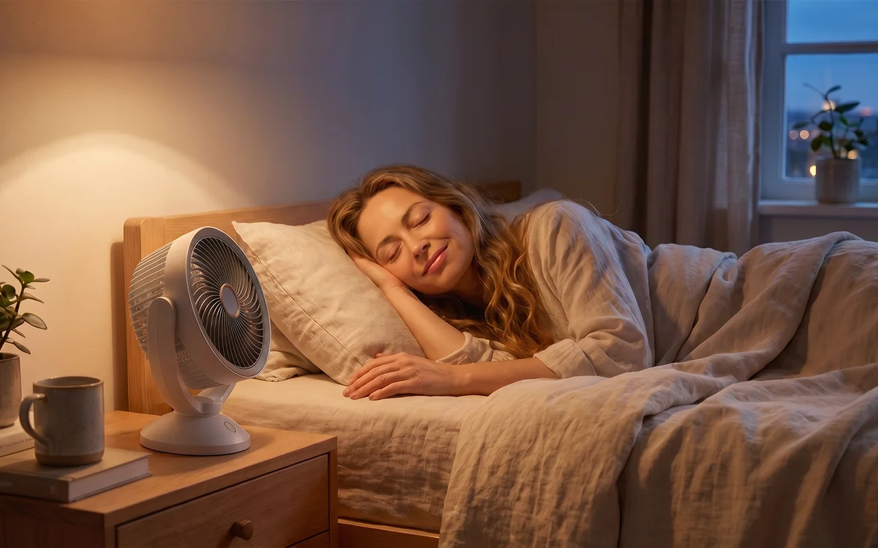Hiljainen ääni tukee syvempää unta lämpiminä iltoina. Hellävarainen ilmavirta vähentää tunkkaisuutta ja auttaa mielen rauhoittumaan nopeammin.