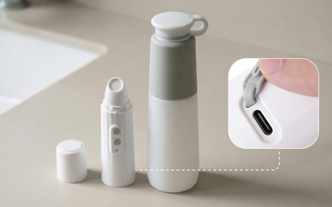 Tämä suihkepullo teki retkeilystä niin paljon helpompaa. Todella helppo käyttää, mahtuu laukkuuni ja latautuu nopeasti. En enää palaa paperiliinoihin.