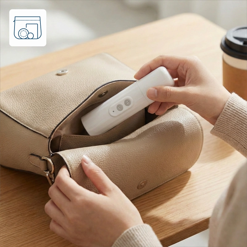Ohut ja kompakti, mahtuu helposti mihin tahansa käsilaukkuun tai reppuun. Ei huolta tilaa vievistä laitteista tai lisätilasta.
