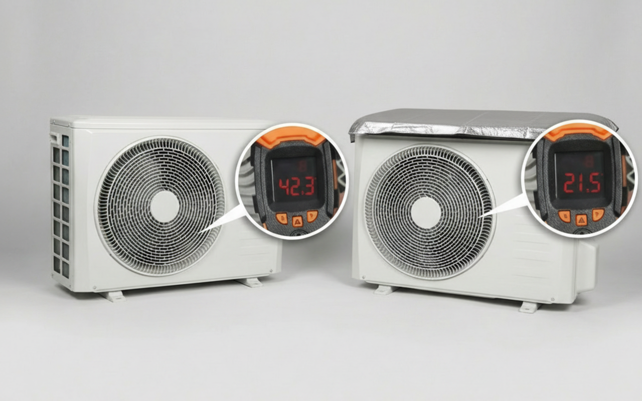 Ulkona oleva ilmastointilaite pysyy nyt viileämpänä. Lisäksi laskuni ovat oikeasti pienentyneet sen jälkeen kun aloin käyttää tätä suojaa!