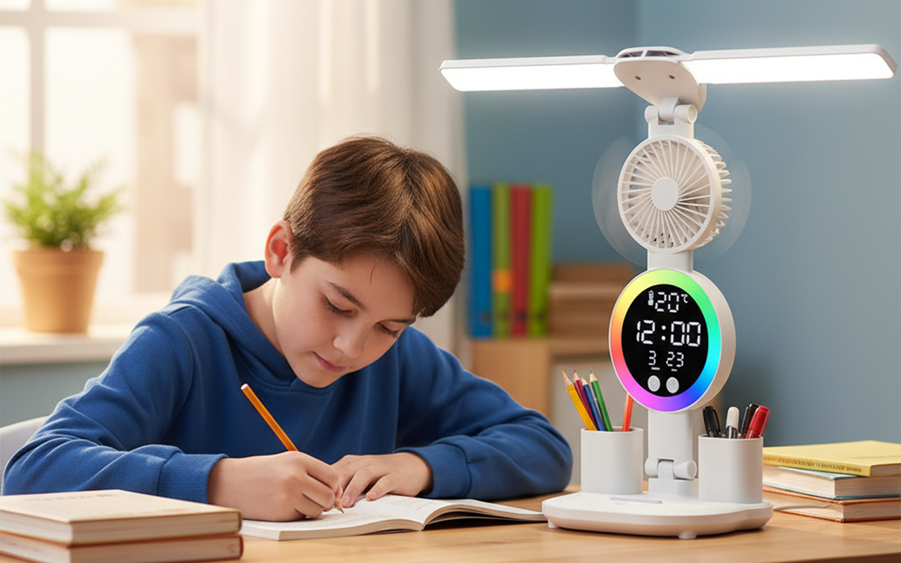 Todella helppo käyttää! Kello on iso ja kirkas, ja tuuletin toimii hiljaisesti. Myöhäisiltaisin lukeminen on nyt paljon mukavampaa.