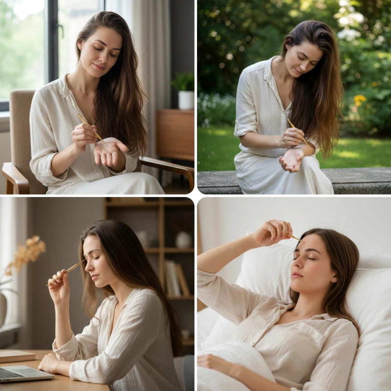 Tykkään käyttää tätä tikkua jalkapohjieni holvikaariin ennen nukkumaanmenoa. Se rentouttaa koko kehoni ja nukahdan nopeammin ja nukun pidempään.