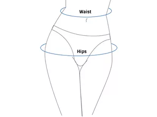 - 2. Kiedo mittanauha vyötärön kapeimman kohdan ja lantion leveimmän kohdan ympäri.