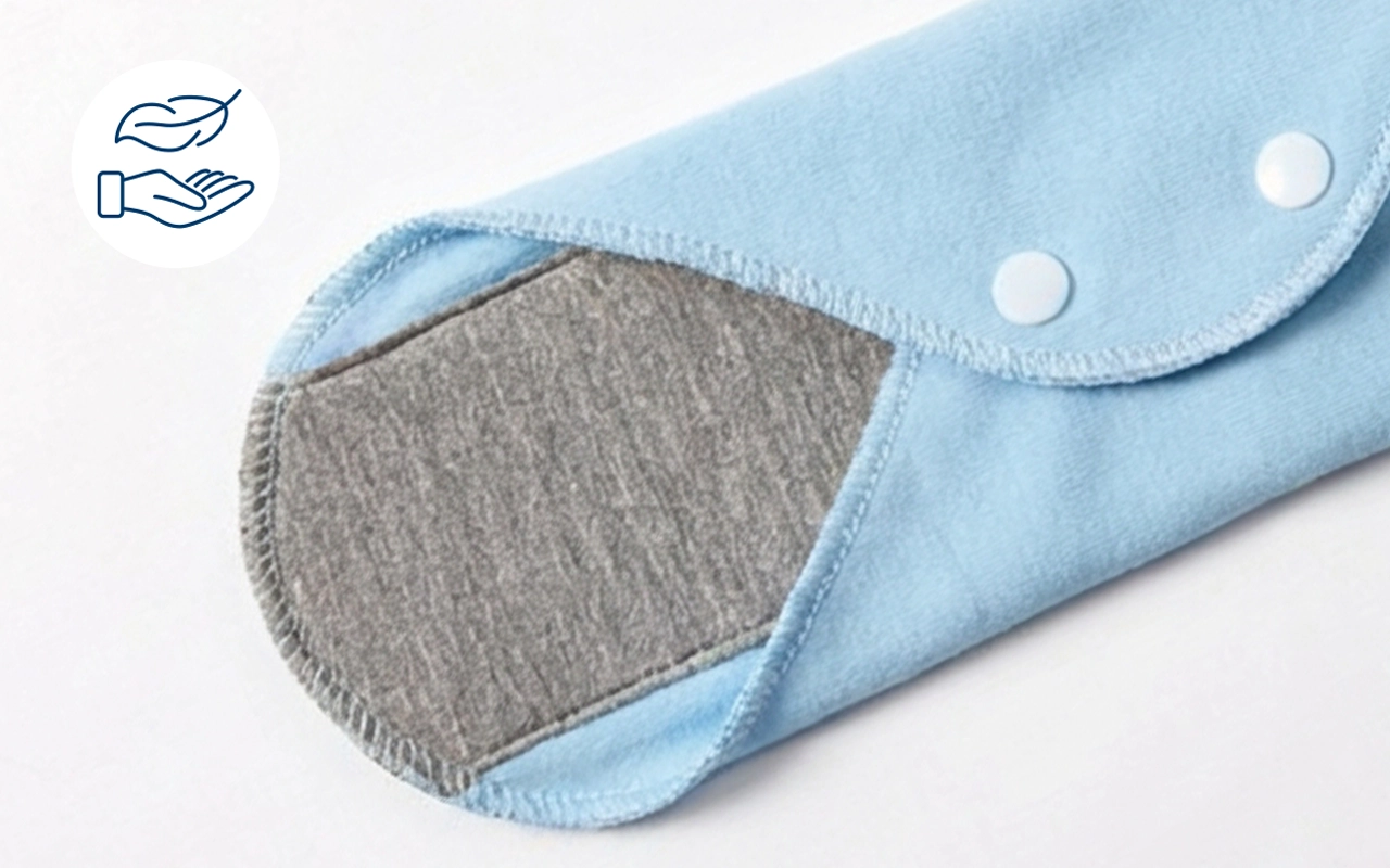 Puuvillainen suoja toimii paljon paremmin kuin kertakäyttöiset. Monenkin pesun jälkeen se on edelleen imukykyinen ja pehmeä.