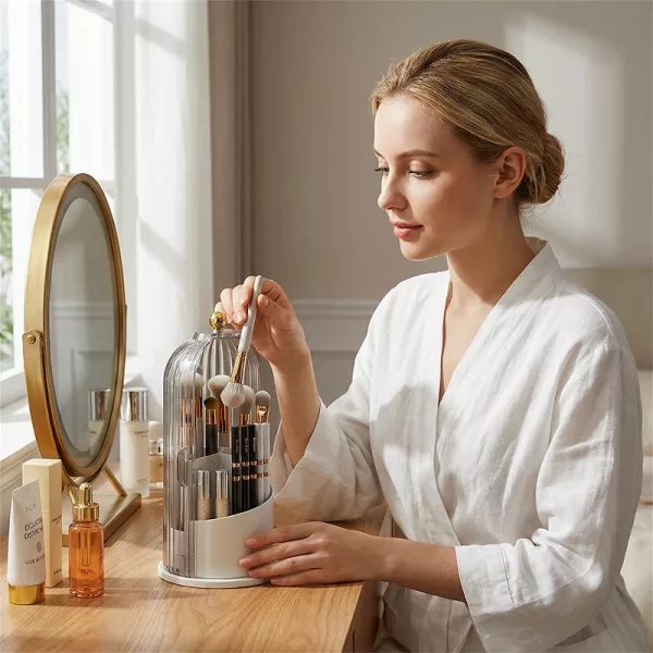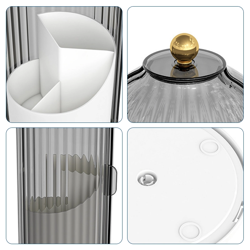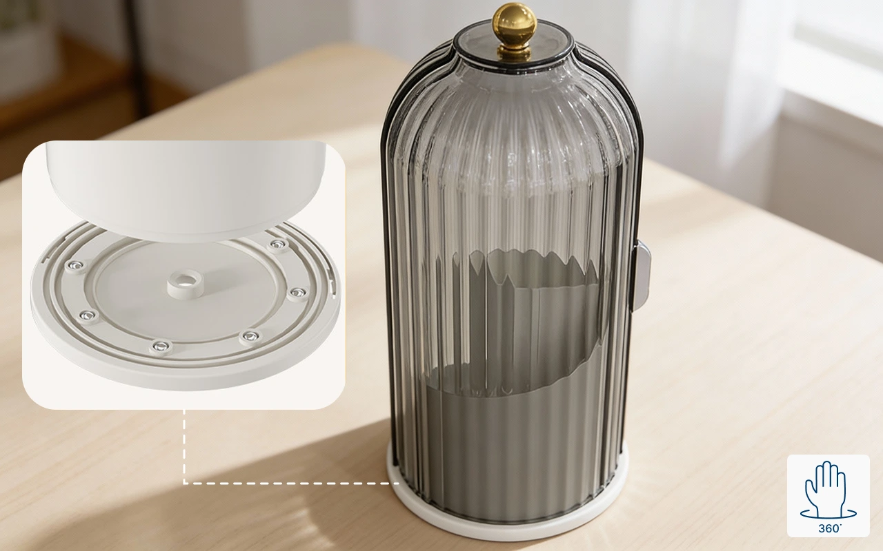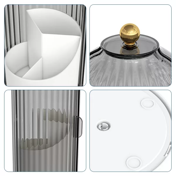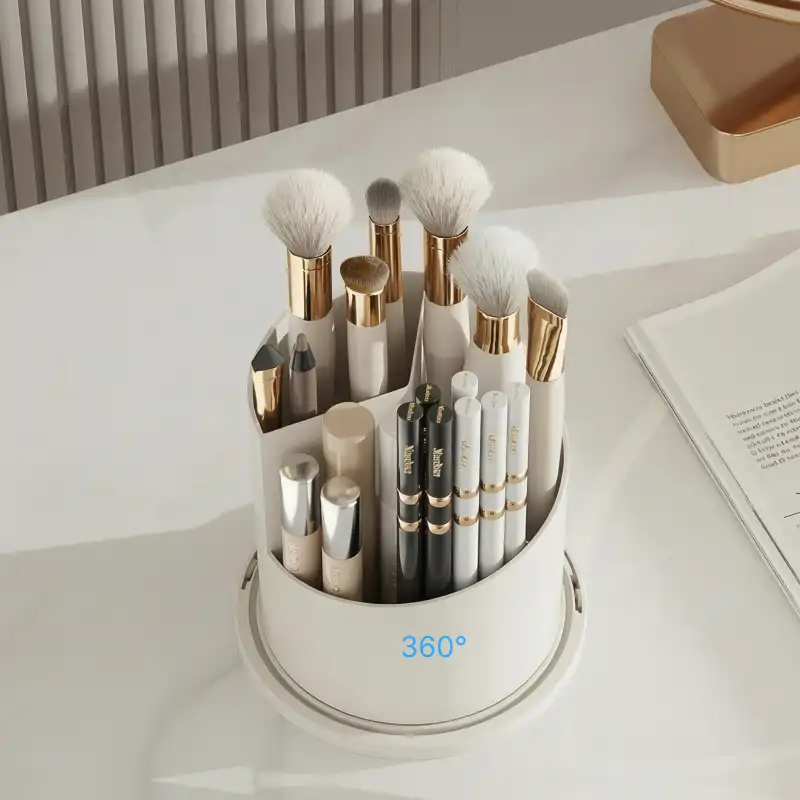 Sileä, pyörivä alusta helpottaa tarvitsemasi tavaran ottamista nopeasti. Ei enää penkomista tai muiden tavaroiden kaatamista oikean siveltimen löytämiseksi.