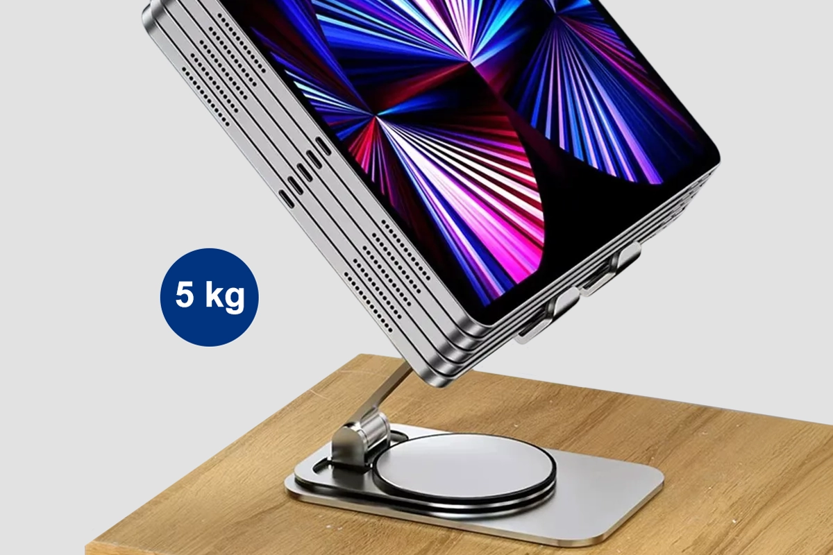 Hankin tämän vaimoni tabletille. Raskas jalusta pitää sen tukevasti paikallaan, kun hän seuraa treenivideoita, ja hän rakastaa, ettei tarvitse enää tukea sitä tyynyillä.