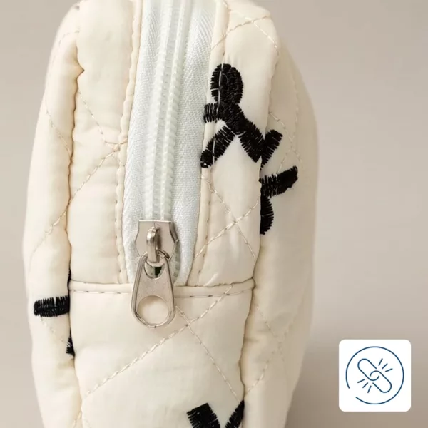 Rakastan että voin pitää tavarani yksityisinä. Vetoketju sulkeutuu hyvin eikä mikään tipu ulos. Lisäksi se on tosi söpö!
