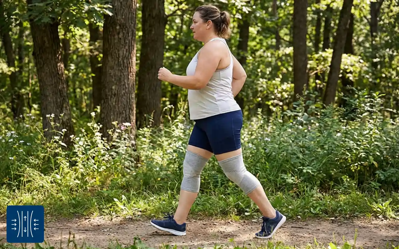 Joustavat suojat myötäilevät niveliäsi ja auttavat vähentämään turvotusta. Lisätuki auttaa pysymään aktiivisena, kävelemään pidemmälle ja tuntemaan olosi vähemmän väsyneeksi.
