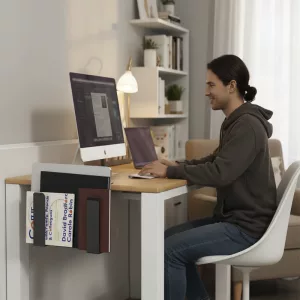 Vähennä sotkua nopeasti käyttämällä älykästä pidikettä pöytäsi vieressä. Nauti enemmän tilaa työskentelyyn, kirjoittamiseen tai kirjoittamiseen ilman häiriöitä.