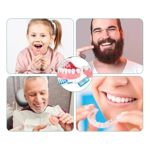 Pehmeät nailonharjakset suojaavat herkkiä osia naarmuuntumiselta tai vaurioilta. Hammasproteesisi saa perusteellisen puhdistuksen ja näyttää aina uudelta.