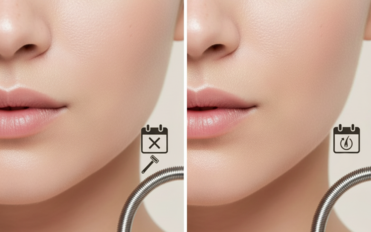 Karvat poistetaan juurineen pitkäkestoista sileyttä varten. Raikas ilme kestää viikkoja, ei vain päiviä.