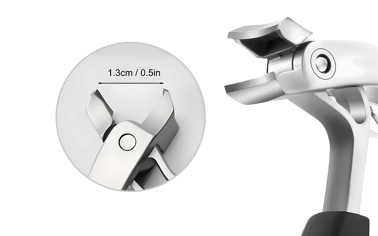 Suuremmat kynnet mahtuvat helposti, joten jokainen leikkaus on yksinkertainen. Ei enää puristamista tai hankalia liikkeitä varpaankynsille.