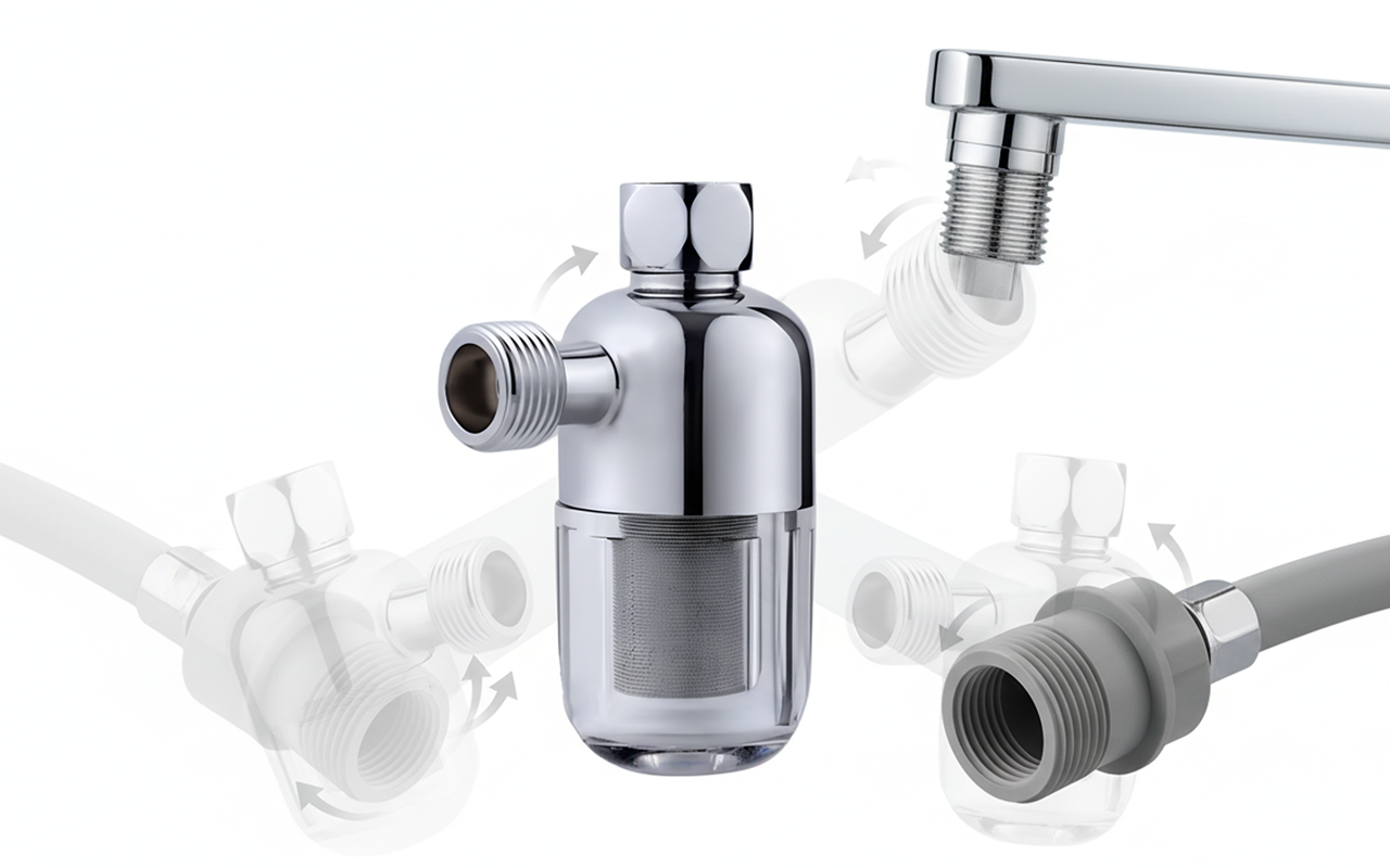 Ortorex-suodatin sopii hanoihin, suihkuihin ja pesulaitteisiin. Yksi nopea kierto liittää sen lähes mihin tahansa liittimeen.